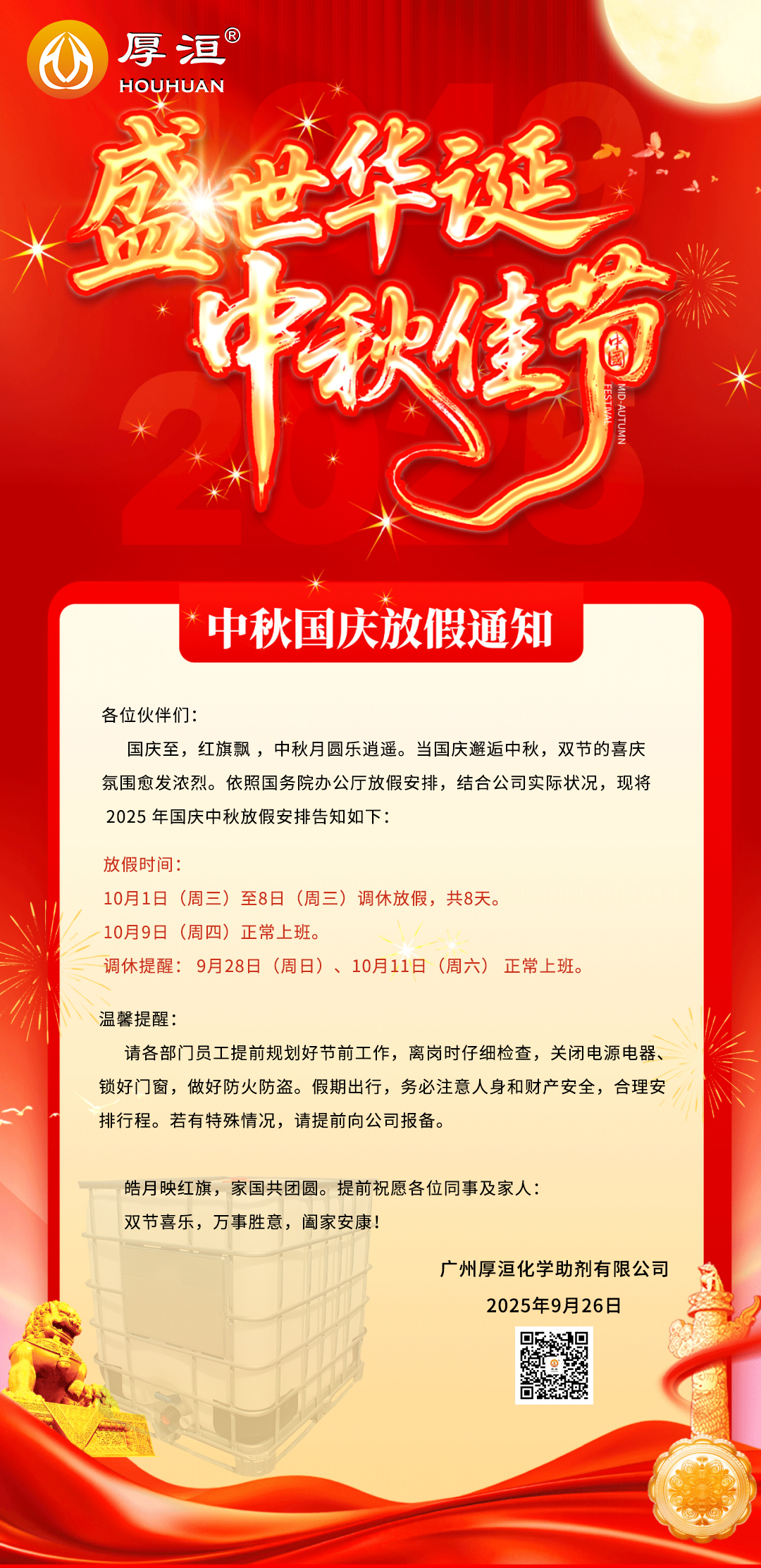 國慶至,紅旗飄 ,中秋月圓樂逍遙。當(dāng)國慶邂逅中秋,雙節(jié)的喜慶氛圍愈發(fā)濃烈。依照國務(wù)院辦公廳放假安排,結(jié)合公司實(shí)際狀況,現(xiàn)將 2025 年國慶中秋放假安排告知如下: